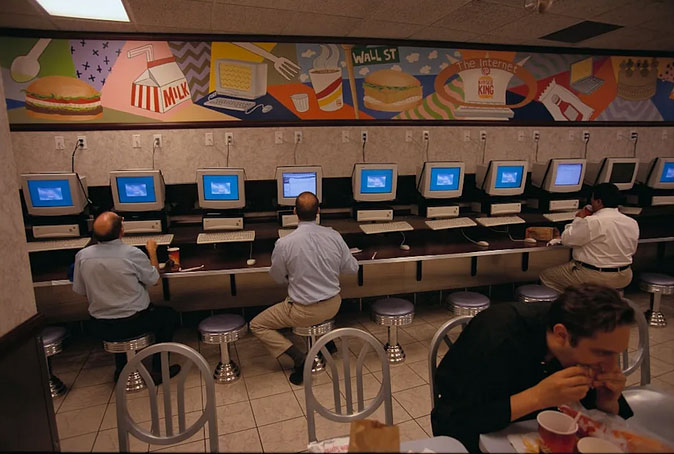 This, in all its glory, is a scene from a New York City Burger King in 1998. The restaurant had a bunch of computers set up, free to use